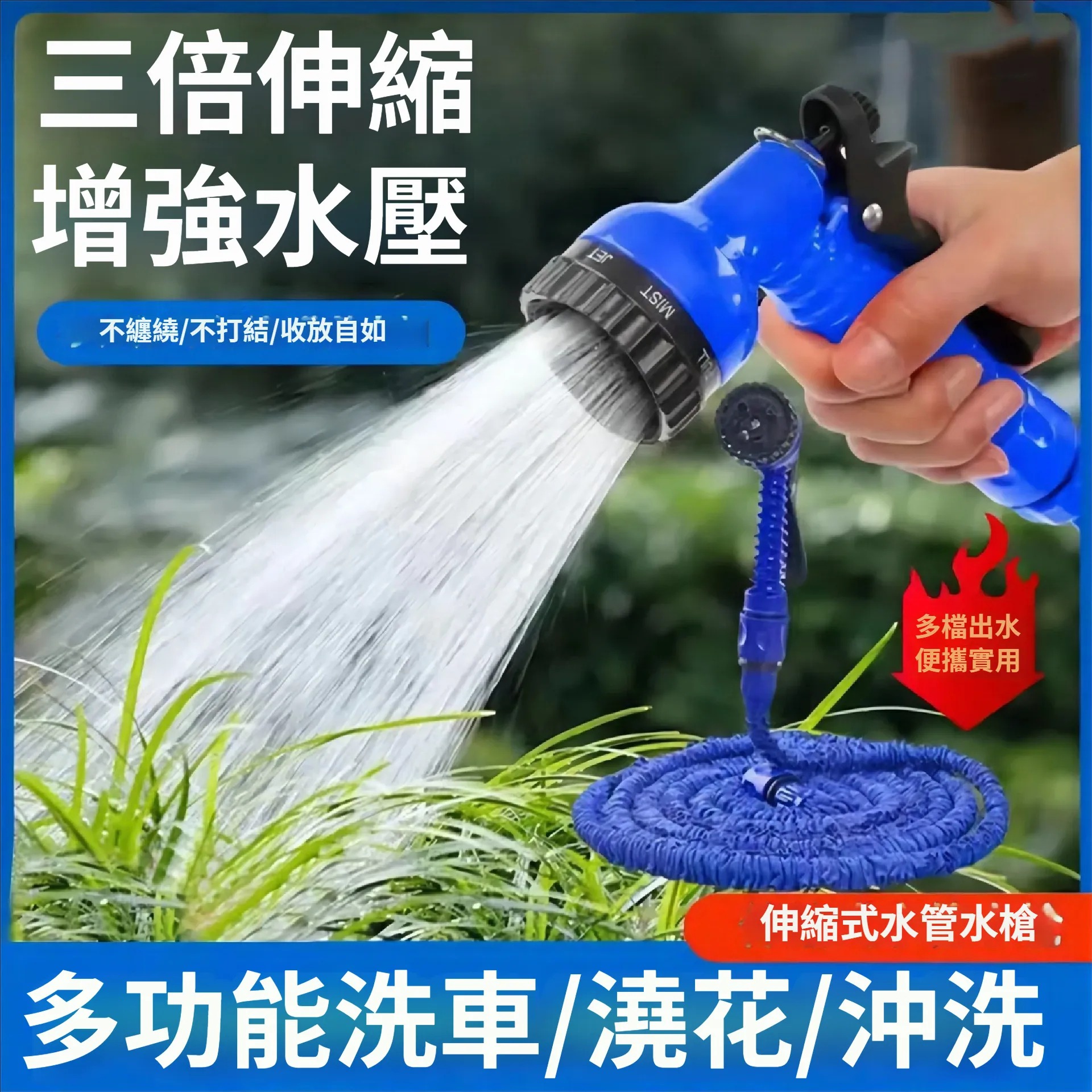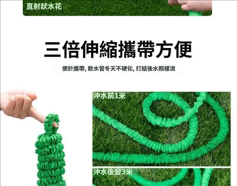 2分鐘前3倍伸缩不纏繞【伸缩水管高壓水槍】22.5米水管+水槍頭 1入组-NT$998