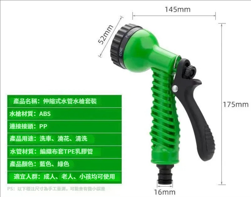 15分鐘前7種模式自由换【伸縮水管高壓水槍】45米水管+水槍頭1入组-NT$1298