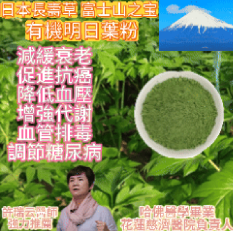 11分鐘前善高血壓、低血壓、失眠症、更年期障礙、胃腸 病、氣喘、心悸、動脈硬化、消渴症、胃癌、狹心症、精力减退、增强體力肝硬化、風濕病、坐骨神經痛、鼻蓄膿症、肩硬便秘等【有機明日葉粉】血管通,百病消,多活二十年 - 🌱天然維生素礦物質群「有機明日葉粉」(250公克装)2入組-NT$996