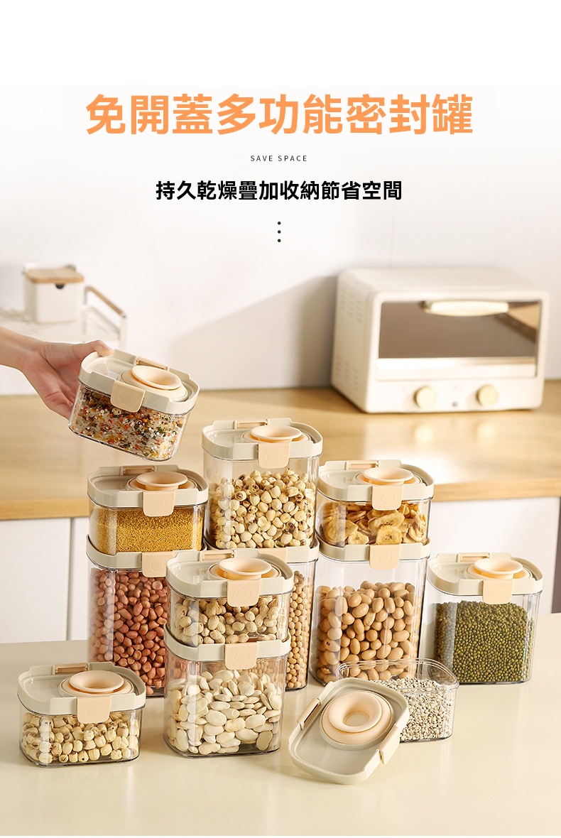 15分鐘前密封罐食品級儲存矽膠鎖扣收納盒廚房香料豆子堅果五穀雜糧儲物罐 - 【限時秒殺】:二組入 NT$ 998