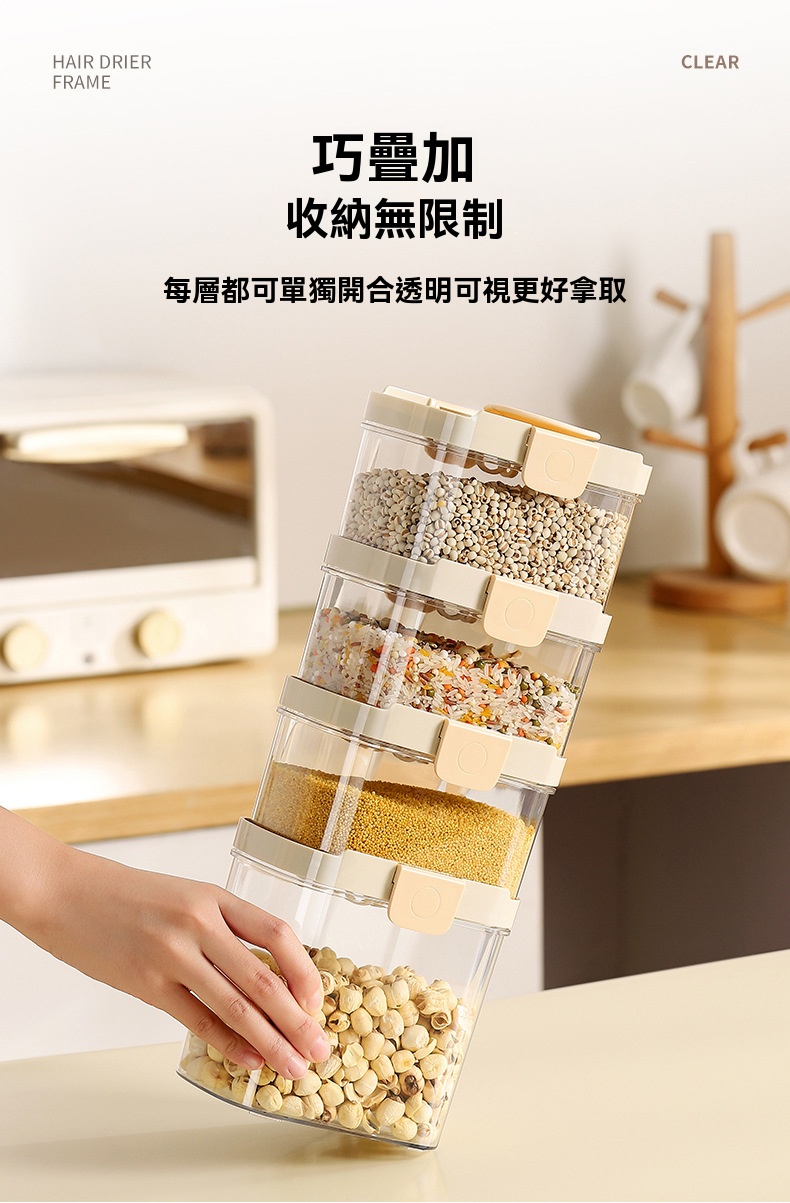 5分鐘前密封罐食品級儲存矽膠鎖扣收納盒廚房香料豆子堅果五穀雜糧儲物罐 - 【限時秒殺】:四組入 NT$ 1298