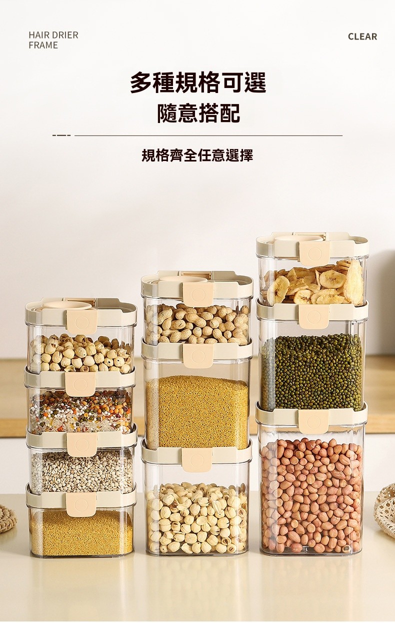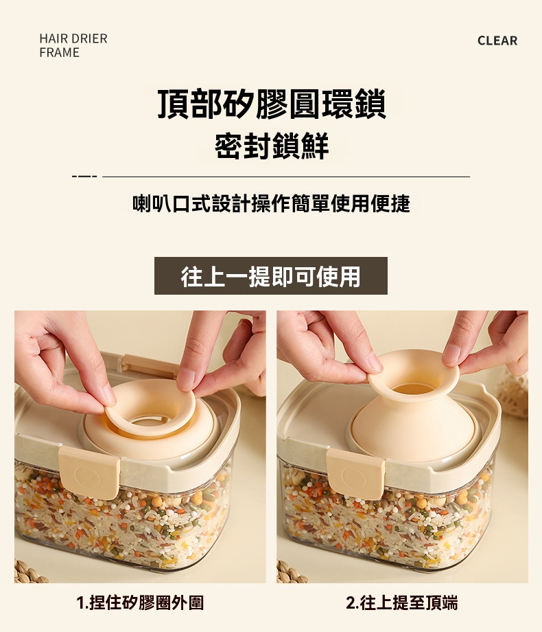 半小時前密封罐食品級儲存矽膠鎖扣收納盒廚房香料豆子堅果五穀雜糧儲物罐 - 【限時秒殺】:二組入 NT$ 998