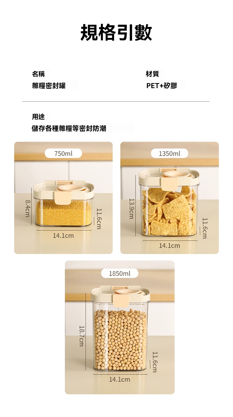 半小時前密封罐食品級儲存矽膠鎖扣收納盒廚房香料豆子堅果五穀雜糧儲物罐 - 【限時秒殺】:四組入 NT$ 1298