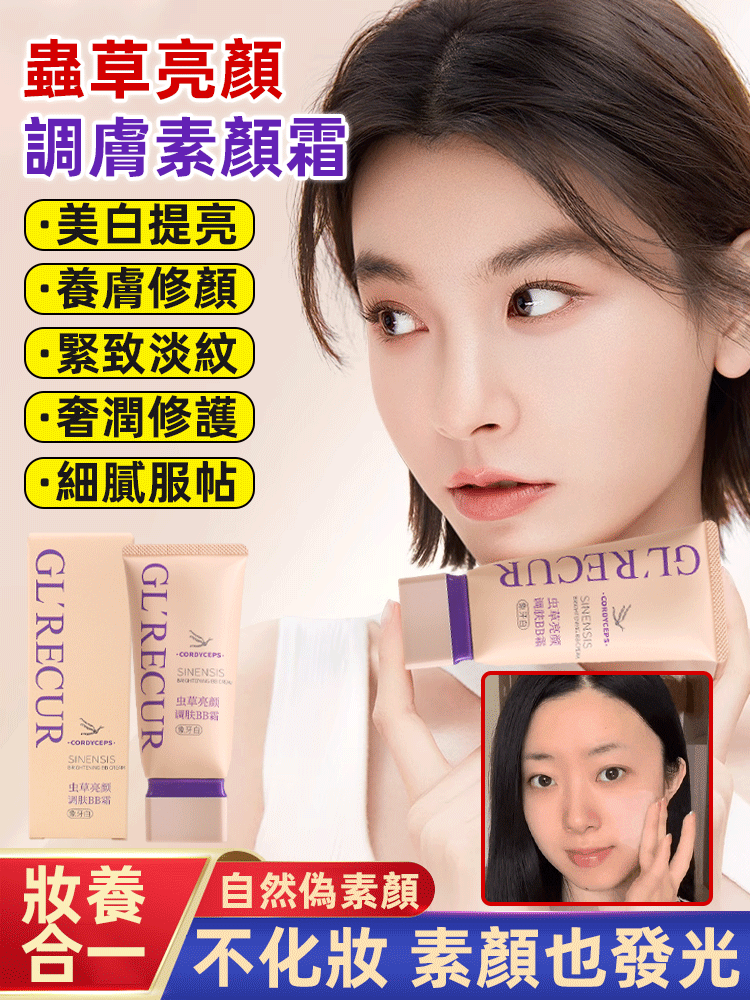 半小時前蟲草亮顏素顏霜妝養合一的美白素顏霜10秒搞定出門!清透0粉感 天生奶油肌~ 耐水 耐汗 一整天都不脫妝 - [4]「限時下殺:買二送二」4入組 NT$1198(60%的客戶選擇)