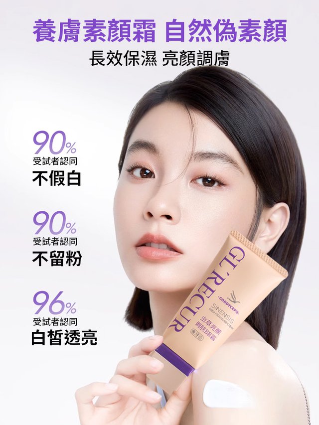 4分鐘前蟲草亮顏素顏霜妝養合一的美白素顏霜10秒搞定出門!清透0粉感 天生奶油肌~ 耐水 耐汗 一整天都不脫妝 - [2]「實惠體驗:買一送一」2入組 NT$899(遮瑕提亮保濕快速美妝)